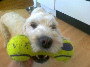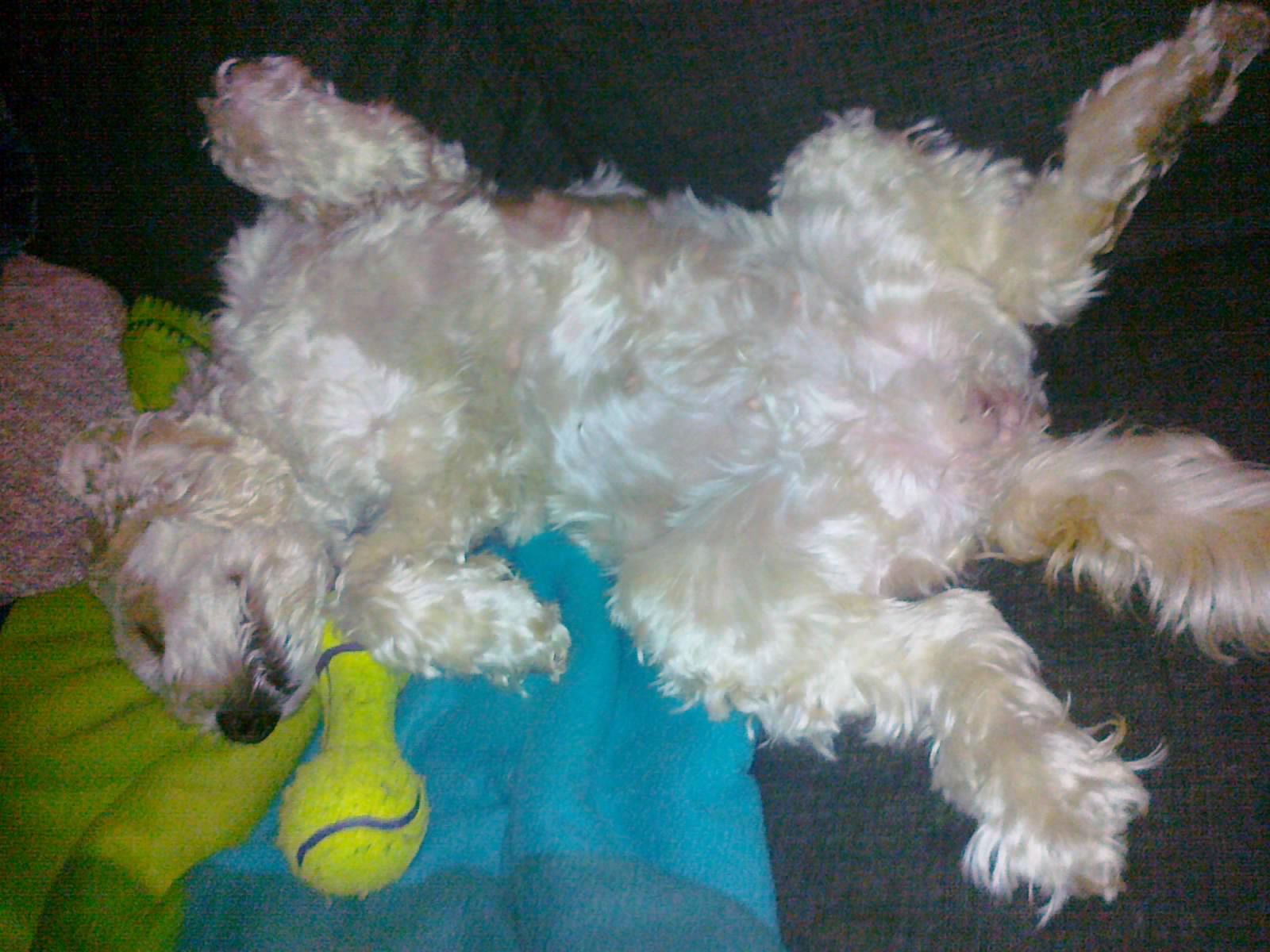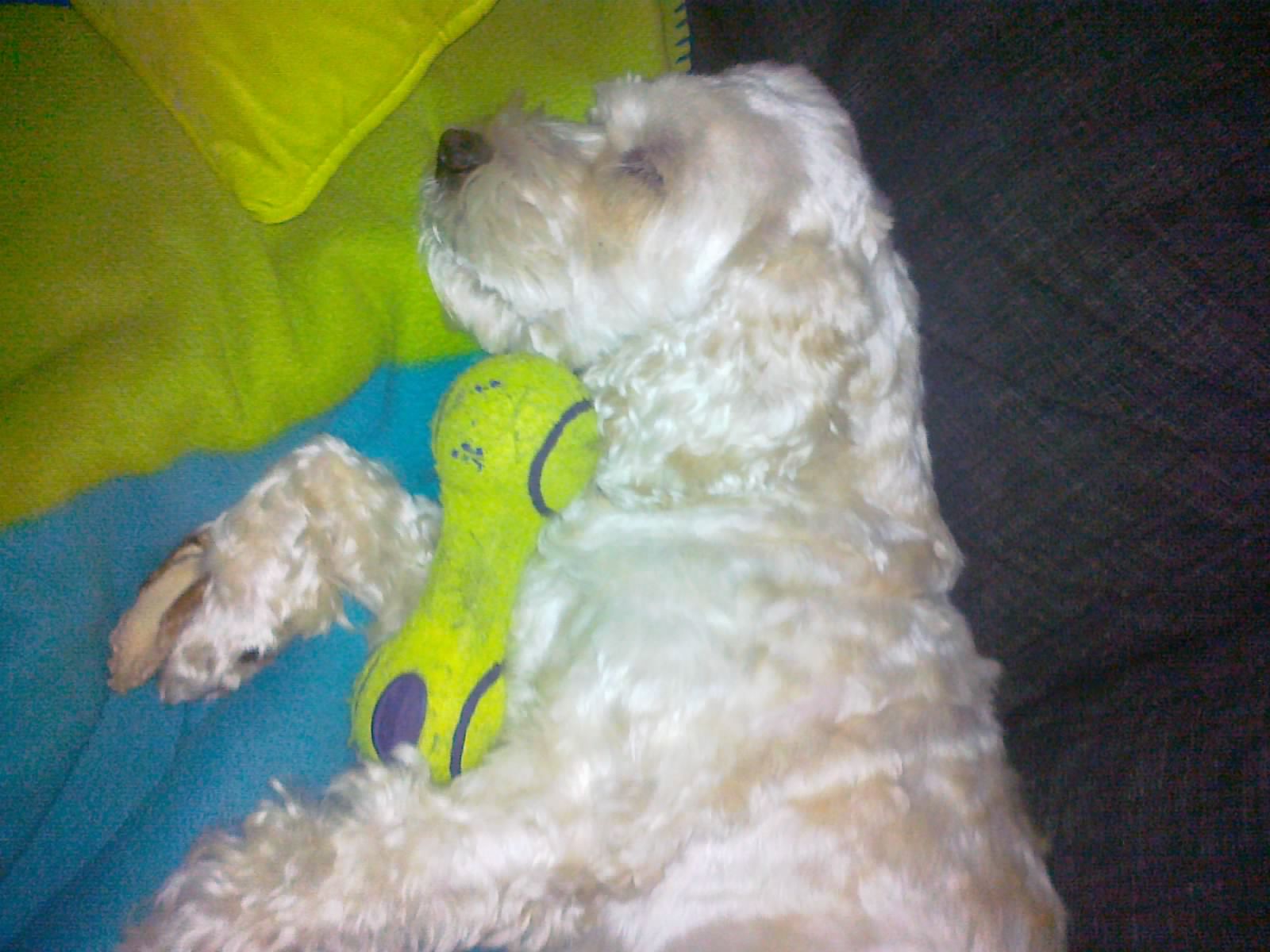 Hon gapar, och jag ser att hon fått två tjusiga stora framtänder, så jag säger: