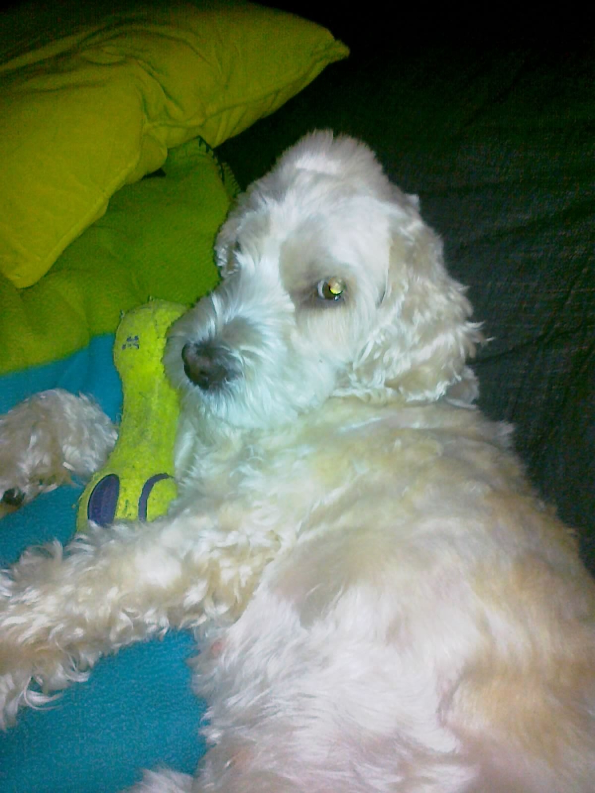 Hon bestämde att INGEN fick leka med pipleksaker, förutom hon själv. Så fort någon annan (hund) tog en pipleksak började hon skälla, och studsa med framtassarna mot golvet, ELLER så snodde hon åt sej pipgrejen och sprang iväg.