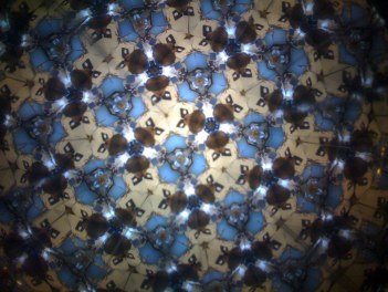 Man skulle kunna tycka att det är vackert att gå omkring med ett kaleidioskop mitt framför ögonen hela tiden, men näe…. Det är mest bara obehagligt och läskigt. För jag håller inte i kaleidioskopet själv, utan det är inmonterat någonstans inne i hjärnan – förhoppningsvis tillfälligt – och talar om att huvudet tänker starta en migränattack snart. Hur snart vet jag inte.