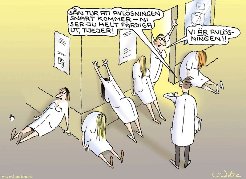 Eller sjukvården. Där har det länge behövts mer personal och mer pengar. Men det kommer inte politikerna att förstå förrän dom själva blir sjuka, eller förrän någon Undersökning visar att vi ligger sist på någon lista över hela världen.