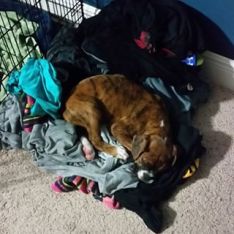 Packa-högen är väldigt knölig och rörig. Milton har nämligen bestämt sej för att jag gjorde den högen bara för Hans skull – att det är hans Nya Sovplats, så han har ”fixat till den” lite, så att alla kläder formar sej fint efter hans kropp, och nu sover han sååååå gott i sin nya ”säng”.