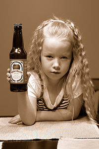 flicka med flaska