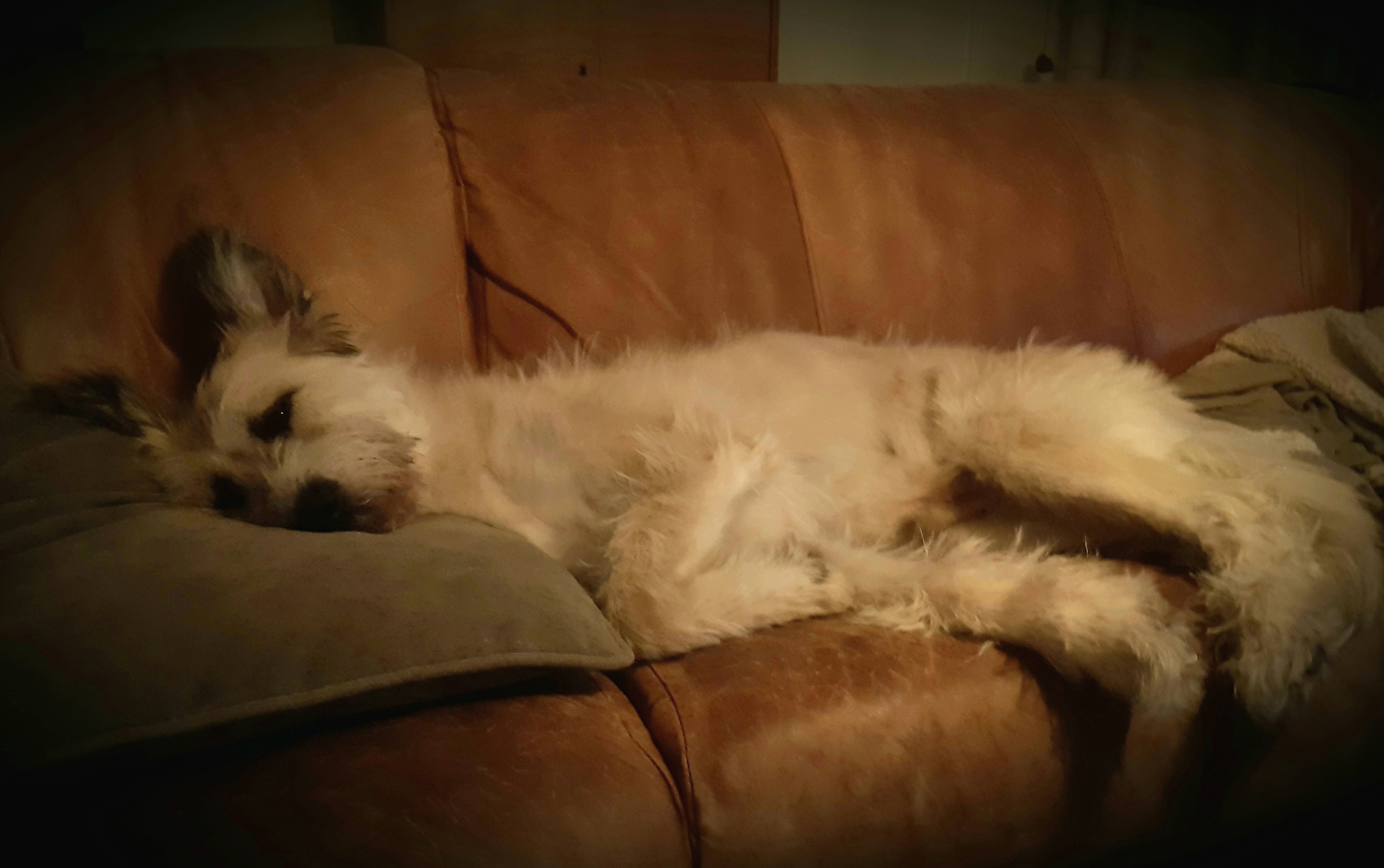 Jag går upp och alla blir nöjda. Glada svansar viftar och alla är hungriga. Jag gör lite morgonbestyr i badrummet och går sedan ut i vardagsrummet där två glada hundar viftar på svansarna så det dunkar i soffan. Det betyder ”God morgon matte, vi älskar dej mest-av-allt-i-hela-världen och vi är hungriga!”. Så fint sätt att hälsa sin matte godmorgon, tycker jag.