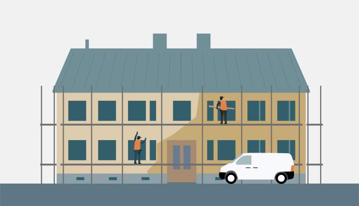 En granne i ett färdigt hus sa att hon köpt en husbil och bott i den när det var som värst. Det låter som en bra idé, men tyvärr står inte Akelius för inköp av husbil.