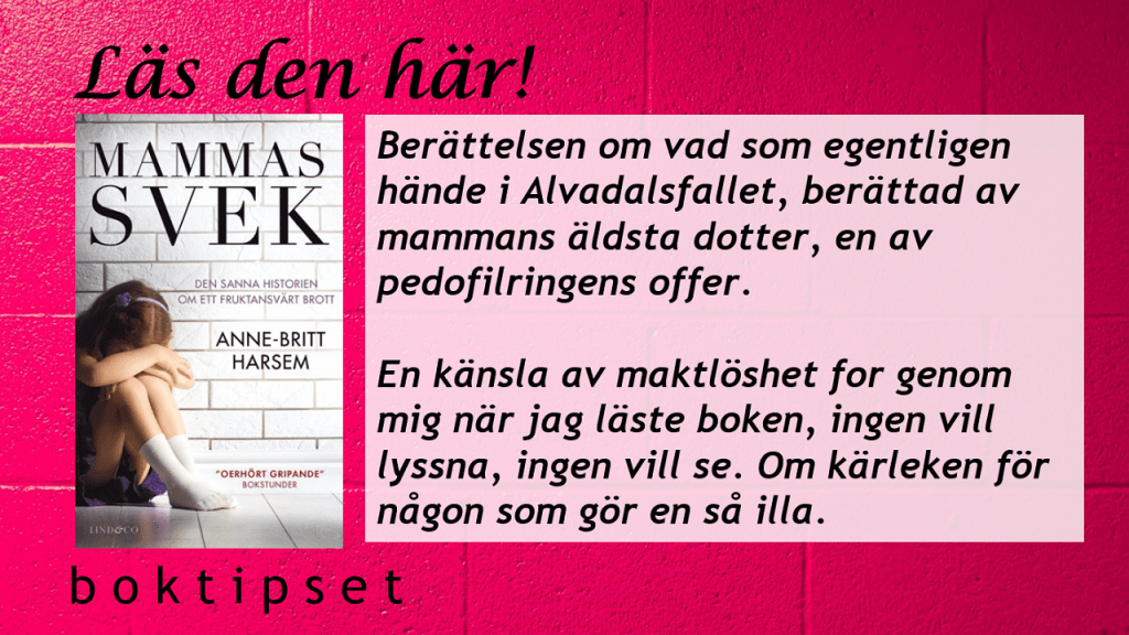 Eller den 12-åriga flickan som via nätet kontaktade ”äckliga gubbar” som hon träffade och lät dom utsätta henne för övergrepp och när jag berättade det för mamma och pappan, la pappan kärleksfullt armen om dottern och reagerade så konstigt så att jag fick kväljningar. Tyvärr kan man inte (eller kunde inte iallafall) skriva i utredningar att man ”fick en konstig känsla” eller att man ”känner på sej att….” etc. Never ever! Då var det otroligt fel av en socialsekreterare att prata om att man kände saker. Allt skulle bevisas och det skulle vara fakta. Dock är det väldigt lite som är fakta och/eller går att bevisa i såna här fall. Berättar ett barn något hen utsatts för så är det sedan ”ord mot ord” och vem lyssnar vuxna på : En man som har språkets gåva (och dessutom kanske fiiin utbildning och kan föra sej) eller en liten tjej, eller kille, som är livrädd när hen berättar och inte ens ord för vad som hänt? Allt ska dessutom BEVISAS.