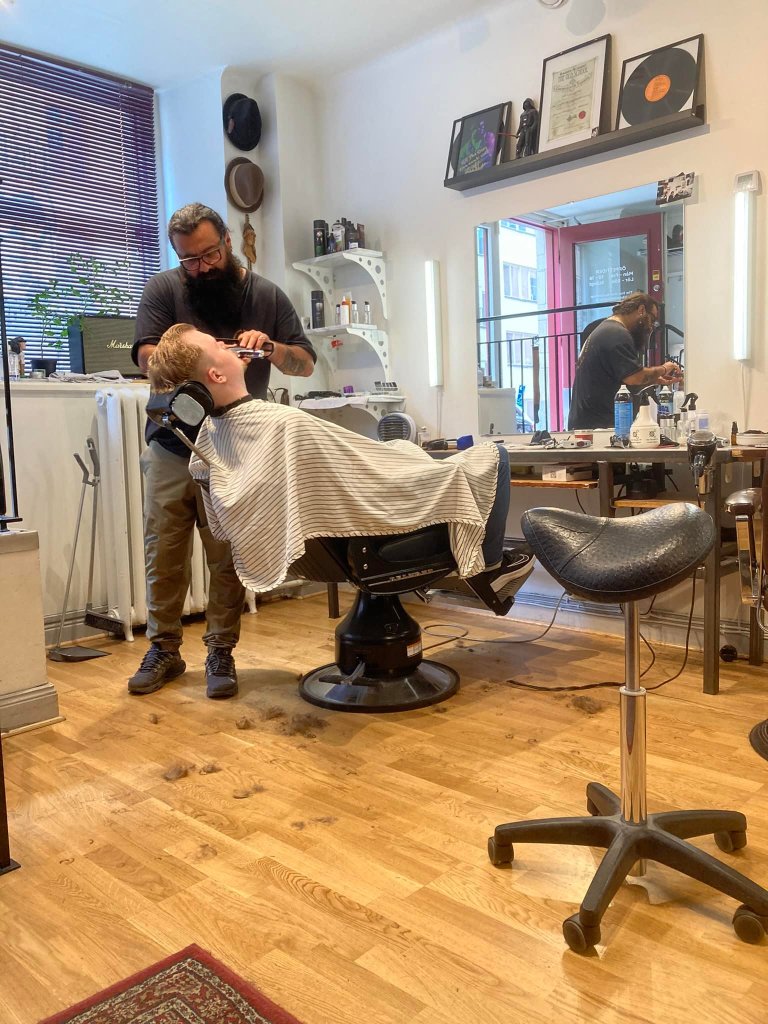 Det var första gången Minsting, 23, var hos en frisör/barberare. DET är kanske lite konstigare. Att han aldrig varit hos en frisör. Jag började klippa Äldste Sonen från början, själv, och lärde mej efter hand hur det skulle göras….sådär lite oproffsigt men ändå helt okey. Ett tag klippte jag Äldste Sonen när han sov, eftersom han: 1. Sov så djupt. 2. Vägrade sitta still när jag skulle klippa honom.