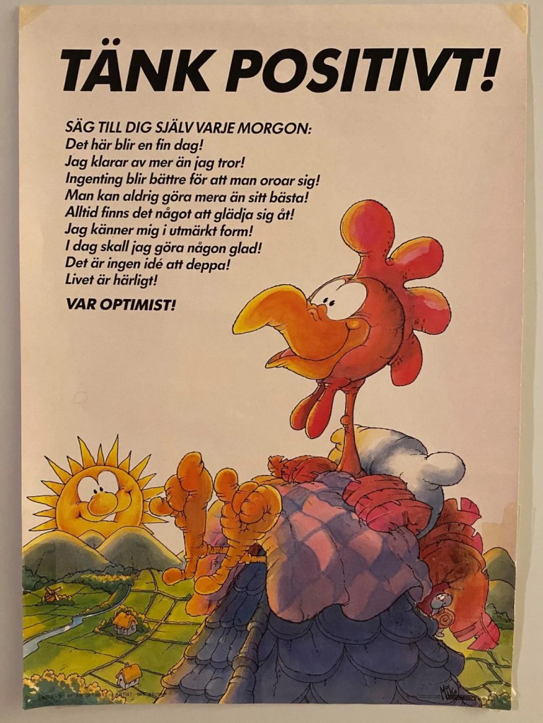 Jag är en positiv optimist som nästan tycker det gör fysiskt ont när jag korta stunder blir en negativ pessimist. Jag kan verkligen inte leva så. En del är såna av naturen och hittar fel i det mesta, ifrågasätter och oroar sig och hittar faror och ”saker-som-kan-hända/gå-fel” överallt med inställningen ”det-kommer-inte-att-gå”. ”Den som söker han finner”. Letar man efter skiten och ondskan så hittar man den. Och tvärtom.