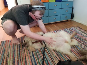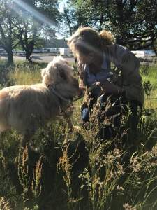 Jag satt där på stenen och såg hur hundägare efter hundägare tog emot sin hund, gick ut på gräsmattan och hälsade på sin hund. Det var alltifrån hyperstressade hundar till jätteglada hundar till rädda hundar. Precis som dom nyblivna ägarna: En del var lugna, andra var stressade och stissiga.