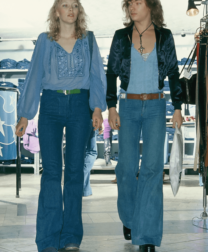 Jeansen var jätteviktiga! De skulle ha vissa märken som tex ”Puss och kram” eller ”Gul och Blå” eller möjligen ”Levis” och dom skulle sitta jättetight över mage, rumpa och lår och så skulle de vara utsvängda nedtill. Satt de det minsta löst över rumpa eller mage var det fel fel fel. Jeansen skulle gärna täcka hela fötterna så det såg ut som om man var utan fötter och hade man platåskor så skulle allt täckas.