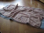 Sen kissar hon på handduken som ligger i en hög på golvet.